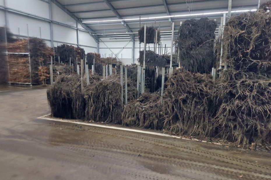 Trots toont boomkweker Marc Lodders zijn in totaal 8000 vierkante meter aan nieuwe loodsen, waarvandaan op jaarbasis circa 40 miljoen bomen hun weg zullen vinden naar klanten in binnen- en buitenland. De bomen zijn deels afkomstig van de 120 hectare eigen land en deels van inkoop. In de eerste hal worden de bomen gesorteerd, waarna ze worden doorgeschoven naar de voorraad- of de verkoophal. Daar liggen ongeveer 100 soorten opgetast in genummerde rijen. 'Het werkt als een magazijn bij Ikea', zo schetst hij: ondanks een groot assortiment is alles snel te vinden.