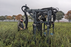 Basrijs was aanwezig met de schijfplanter PE80, een tussenmodel van hun PE70 en PE100-machines. Deze plantmachine is geschikt voor smalle planten als jonge bomen en bos- en haagplantsoen. Ook bij dit kleinere model past er een rijenfrees voor. In hun demonstratie nemen ze de bezoeker letterlijk mee om mee te helpen.