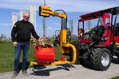 We gaan verder met DT Machinery en hun bindmachine. Deze bindmachine is geschikt voor bomen met een diameter van 1 tot 1,5 meter, is eenvoudig te bedienen en bindt de boom in enkele slagen compact in. De bindmachine is een aanbouwdeel voor een kniklader.