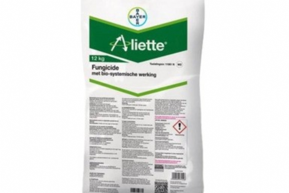 Na een aantal jaren niet verkrijgbaar te zijn geweest in de boomkwekerijsector is fungicide Aliette van Bayer Crop Science weer beschikbaar op de markt. Het etiket van het product werd onlangs uitgebreid, zodat het voortaan ook als spuittoepassing en als aangietbehandeling inzetbaar is. Aliette is werkzaam tegen bladziektes zoals echte meeldauw, botrytis, schurft, maar ook tegen bodemgebonden ziektes als Pythium en Phytophthora.