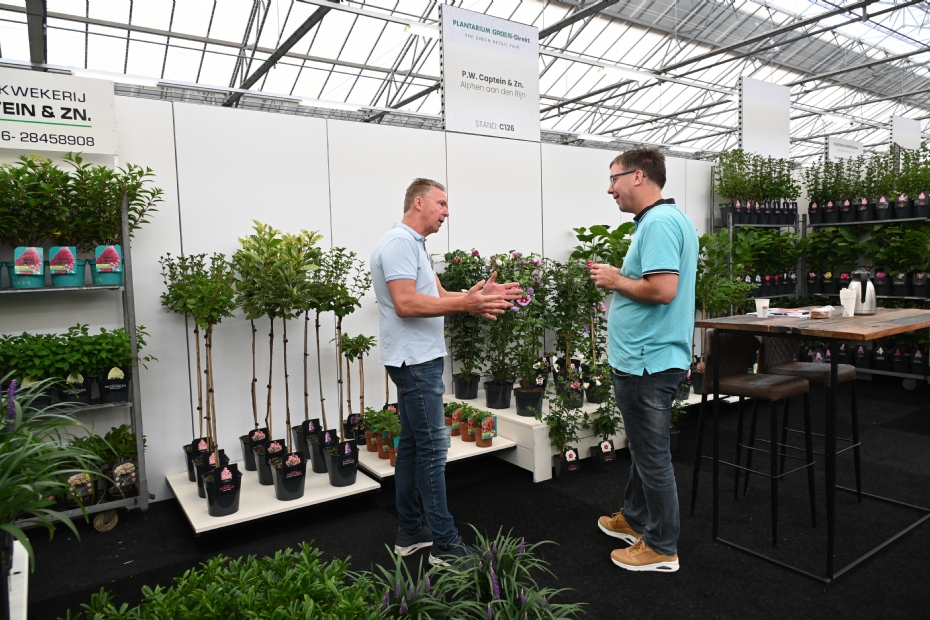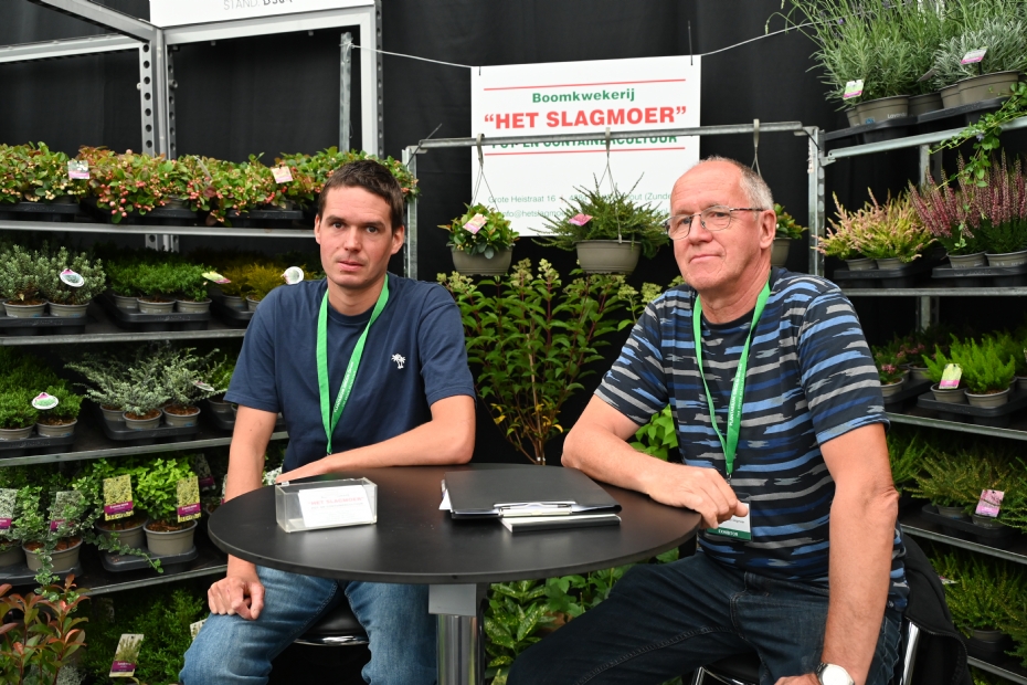Henk en Nick Doomen van Boomkwekerij Slagpoel zien de beurs als het perfecte startschot van het najaarsseizoen. De stemming op de beurs onder kwekers? Die is redelijk volgens vader en zoon. 'Onzekerheid van de economie speelt mee daarin, maar gelukkig heeft het nog geen effecten op de handel. Die loopt gewoon door.'