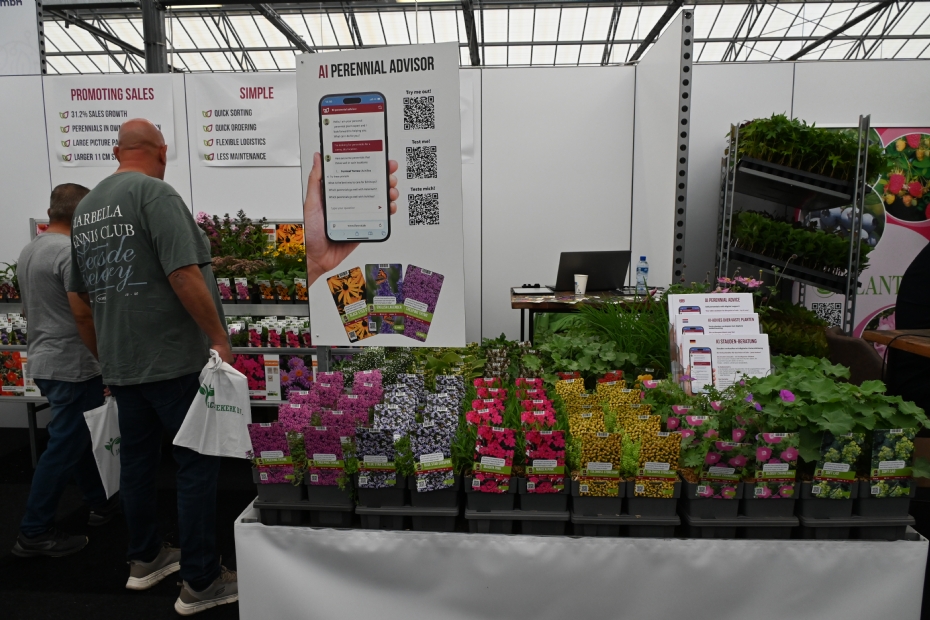 AI is natuurlijk overal, zo ook op de beurs. Het Duitse bedrijf Stauden Köster toonde dan ook een AI Parallel Advisor: een digitale tool die tuincentra en klanten helpt met plantadvies. Via een QR-code op etiketten krijgen consumenten eenvoudig toegang tot de chatbot die álle informatie heeft over het assortiment.