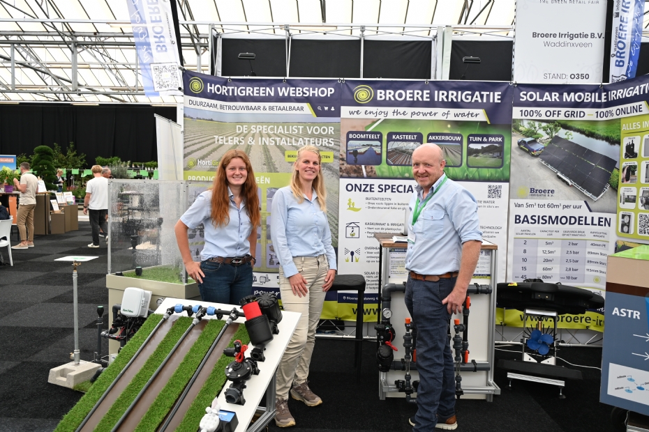 Na het droge voorjaar waar Nederland doorheen is gegaan kwamen de afgelopen twee dagen bij Broere Irrigatie veel bezoekers langs die graag even wilden sparren. 'Bedrijven gaan strategischer nadenken,' vertelt Anja van Tilburg. 'Dus we kregen veel bezoekers die graag wilden weten hoe goed om te gaan met droogte: hoe richt je dat strategisch in?'