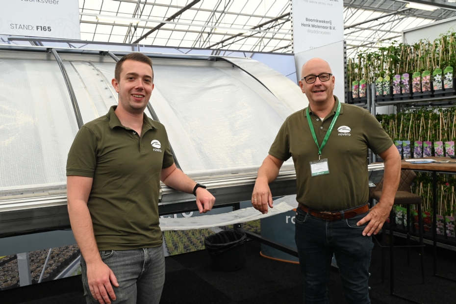 Rovero toonde hun welbekende Roll-Air kas, een kas die op- en afgerold kan worden. Bezoekers reageerden enthousiast, al heerst er ook voorzichtigheid vanwege de forse investering die deze innovatieve, maar prijzige kas vraagt merken Jelmer Pool en Jan van Hemert.