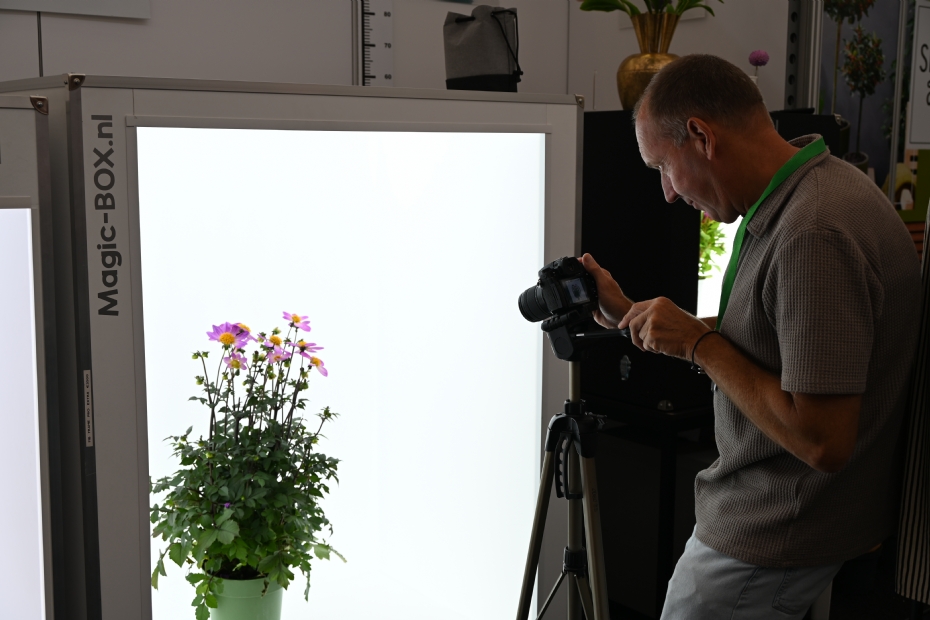 Het bedrijf MagicBOX uit Almere showde een oplossing voor als je zelf eenvoudig op je bedrijf goede productfoto's wil maken. MagicBOX produceert compacte kleine fotostudio's met geïntegreerde ledverlichting. Het bedrijf biedt ook een box aan waarbij de plant of het product 360 gedraaid kan met een afstandsbediening. Op deze manier kun je ook een filmpje laten maken of foto's maken in verschillende hoeken. De foto"dozen" starten bij zo'n 1000 euro voor een klein formaat oplopend tot 4500 euro, als je hele bomen wil fotograferen.