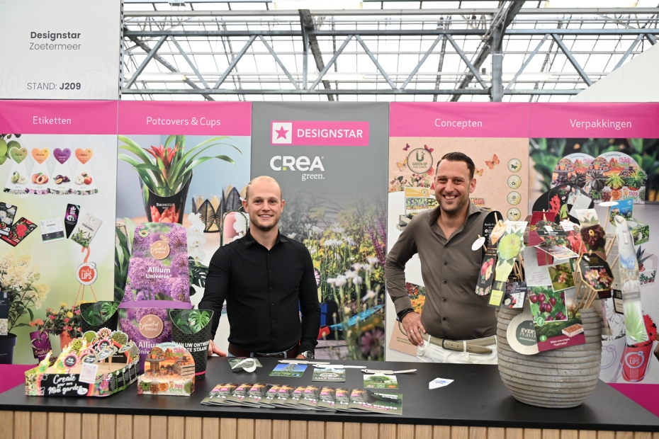 Designstar liet zien hoe zij etiketten en promotiemateriaal ontwikkelen voor onder meer Intratuin en Jumbo. Klanten kunnen online zelf etiketten bekijken en aanpassen. Nieuw is de TreeWrap, een soort tiewrap die eenvoudig om een plant bevestigd kan worden.