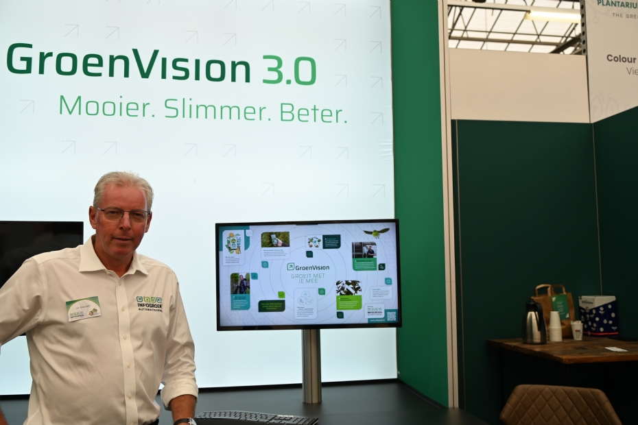 InfoGroen gaf bezoekers een voorproefje van GroenVision 3.0, dat later dit jaar officieel wordt geïntroduceerd op GrootGroenPlus. Het programma is sneller en gebruiksvriendelijker geworden, wat kwekers aanspreekt. Sinds de eerste versie in 2012 is veel veranderd; volgens Jan Kastelein oogt de software nu ook een stuk moderner.
