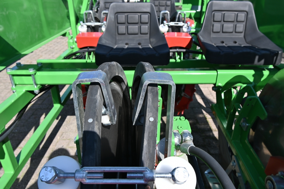 'De 80 staat voor de diameter van de schijf,' vertelt eigenaar Corné Bastiaansen. 'Hoe groter de schijf, hoe groter het plantmateriaal dat verwerkt kan worden. De PE80 is ideaal voor situaties waarin de PE70 te licht is, maar de PE100 te zwaar of te groot.' De aanleiding voor de ontwikkeling kwam uit Duitsland, waar kwekers bos- en haagplantsoen wilden planten in vijf rijen op een bed met 25 cm rijafstand - een opstelling die met de PE100 technisch niet haalbaar was.