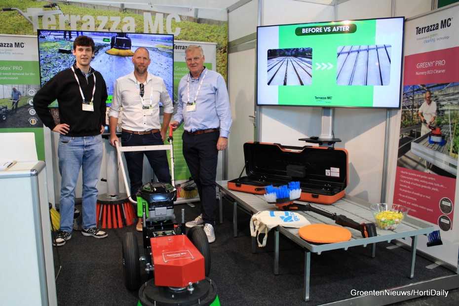 De Greeny PRO verwijdert mossen en vuil volledig ecologisch, zonder gebruik van chemicaliën, hoge druk of hitte. De Greeny PRO blijkt voor steeds meer kwekers onmisbaar te worden. Deze slimme machine reinigt kweektafels niet alleen snel en grondig, maar weet ook ecologie en kwaliteit perfect te combineren. 'Tijdens GreenTech Amsterdam was de belangstelling voor de machine overweldigend. De Greeny PRO vereenvoudigt het werk van kwekers aanzienlijk en de bijbehorende groene technologie spreekt duidelijk aan', aldus Nolle Coessens, marketingmanager bij Terrazza MC. Waar kwekers voorheen uren kwijt waren aan handmatig schrobben of moesten investeren in dure installaties, biedt de Greeny PRO een compacte, betaalbare en efficiënte oplossing. Dankzij de stevige bouw en het gebruiksgemak is de machine ideaal voor dagelijks gebruik in de kas of kwekerij.