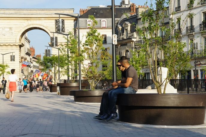 Bomen in mega bloempotten vergroenen het centrum van Dijon