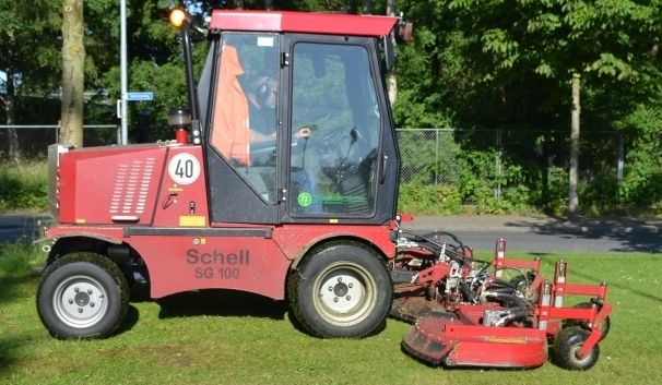 Volgens Hofstede is het een degelijke, maar prijzige machine waar je weinig onkosten aan krijgt. De gemeente Noordoostpolder heeft er al drie jaar lang een aantal lopen en ook op de Zwolse sportvelden wordt een Schell gebruikt. Als pluspunten noemt Jan Hofstede de transportsnelheid van 40 km/uur en het feit dat machine straks met achterrollers met een snelheid van 12-15 km per uur sportvelden kan maaien. De heer Bert Scholten, de machinist die voor de gemeente Ede/Wageningen de Schell SG 100 bediende, vond het jammer dat hij de demo weer af moest staan aan de importeur. De enige 'klacht' die hij had was het achteruitzicht. 'Maar binnenkort komt Schell ook uit met een nieuwe cabine en dan is dat probleem verholpen', het geen door Jan Hofstede bevestigde. 'Die nieuwe cabine is leverbaar vanaf 19 juni a.s.'