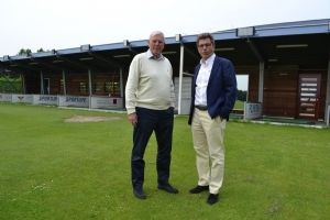 Ton Vreman en Jan Lamsma zijn tevreden met de nieuwe led-verlichting die de driving range verlicht. Ze zijn respectievelijk directeur en commissaris van de holding, die eigenaar is van het onroerend goed van De Kromme Rijn.