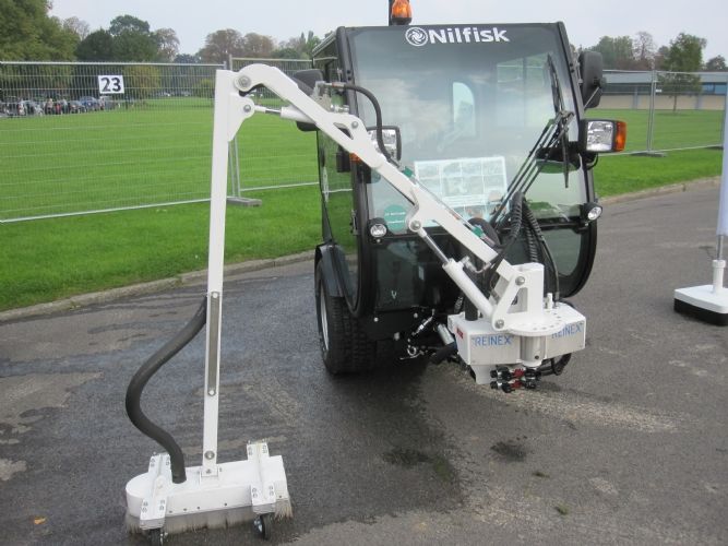 AG-Tec, de Belgische distributeur van Nilfisk Outdoor Division heeft een kleine onkruidborstel ontwikkelt voor onkruidbeheer op moeilijk te benaderen plaatsen. Deze borstel in combinatie met stoom, word gemonteerd aan een draagarm op de Nilfisk carrier. Verkrijgbaar in werkbreedtes 60 en 80 cm, maar desgewenst ook breder mogelijk. Deze borstel op stoom is bedoeld voor kleine ruimten, zoals bijvoorbeeld een boomspiegel. Volgens de woordvoerder van Nilfisk is een dergelijke borstel met hete stoom onder hoge druk, effectiever en goedkoper dan rechtstreeks met heet water. Zoals het zich aan laat zien, zal deze aanbouwmogelijkheid binnenkort ook in Nederland op de markt komen.