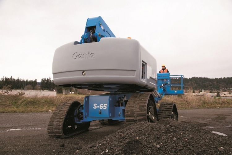 Genie heeft daar goed naar gekeken en getracht deze bekende nadelen te elimineren zonder de voordelen van een rupsaandrijving aan te tasten. De uitkomst is een rupssysteem met 2 rupsen per as, dus 4 in totaal. Deze rupsen kunnen onafhankelijk van elkaar 22 graden op en neer kantelen waarmee ze de oneffen grond of de laadklep van een vrachtwagen netjes volgen. Het actieve pendelassysteem zorgt ervoor dat alle 4 de rupsen ook in ruw terrein contact blijven houden met de bodem voor maximale terreinvaardigheid. De Genie Trax heeft net als een bandenmachine slechts één joystick voor het rijden en waarop men met de duim kan sturen. Ook stuurt hij net als een bandenmachine gewoon met de twee voorste (rubber) rupsen waardoor hij nauwelijks sporen achterlaat.