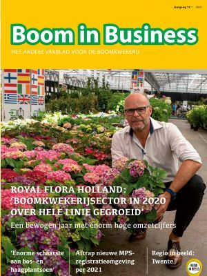 In dit nummer van Boom in Business duiken we dieper in substraat. Zo lees je hoe experts antwoord geven op de vraag of veen een onmisbare grondstof is en hoe fabrikant Legro en leverancier Telermaat blijven innoveren met kokos, perliet en houtvezel. Stefan Even van Planth Health Cure reikt verschillende oplossingen aan voor een grotere plantweerbaarheid en Arie Schipper van Delphy neemt de samenstelling en structuur van mengsels onder de loep. Verder nemen we je mee naar een aantal kwekers in Twente voor Regio in beeld, vertelt Breederplants over de lucratieve samenwerking tussen kwekers en het licentiebureau en vind je een infographic van de boomkwekerijsector over een periode van tien jaar tijd. Tenslotte een verhaal over Lefferts, verduurzaming in de sector en nog véél meer in deze eerste editie van 2021. Veel leesplezier!