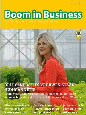 Boom in Business 4 staat in het teken van reduce/recycling, waarbij verschillende leveranciers van gerecyclede en herbruikbare potten en trays hun aanbod tonen. Dat aanbod is groot, want recycling is een thema dat actueler is dan ooit. Voor de rubriek ‘Regio in beeld’ reisden we af naar Brabant, waar we vier kwekers bezoeken: Boomkwekerij Theo Wouters, Kwekerij Maarten Bloemen, Vlemminx Bomen en Van Acht Potcultures. Ook komt het onderwerp ‘biologisch boomkweken’ aan bod en bekijken we een tienrijige schoffelmachine bij Liwardi.